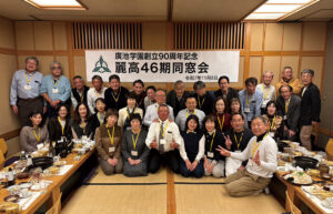 その後、大塚隆晴君による見事な乾杯の発生で宴がスタート。石川県や徳島県といった遠方、そして地元で活躍する同窓生によるスピーチが続き、会場は大いに盛り上がりました。「麗澤の友達は優しく、仲が良い」という参加者からの感想は、寮生活を通じて培われた46期ならではの強固な絆を再認識させてくれました。再会と語らいの時間はあっという間に過ぎ、最後に全員で記念撮影を行い、盛会のうちに幕を閉じました。