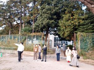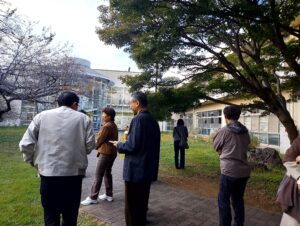 会は11月8日の15時より、廣池学園キャンパス内の研修寮にて受付を開始し、続いて思い出深い園内散策へと向かいました。当時の校舎、ホール、教室、図書室、体育館、寮の跡地を巡る道中では、「長い年月のブランクが一瞬にして溶けた」「まるで高校時代に戻ったようだ」といった感動の声が聞かれ、参加者一同、尽きることのない思い出話に花を咲かせました。また、散策中に現役のSDGs研究会の生徒さんの活発な活動に触れる機会もあり、麗澤高校の変わらぬ伝統と若き息吹を感じ取ることができました。