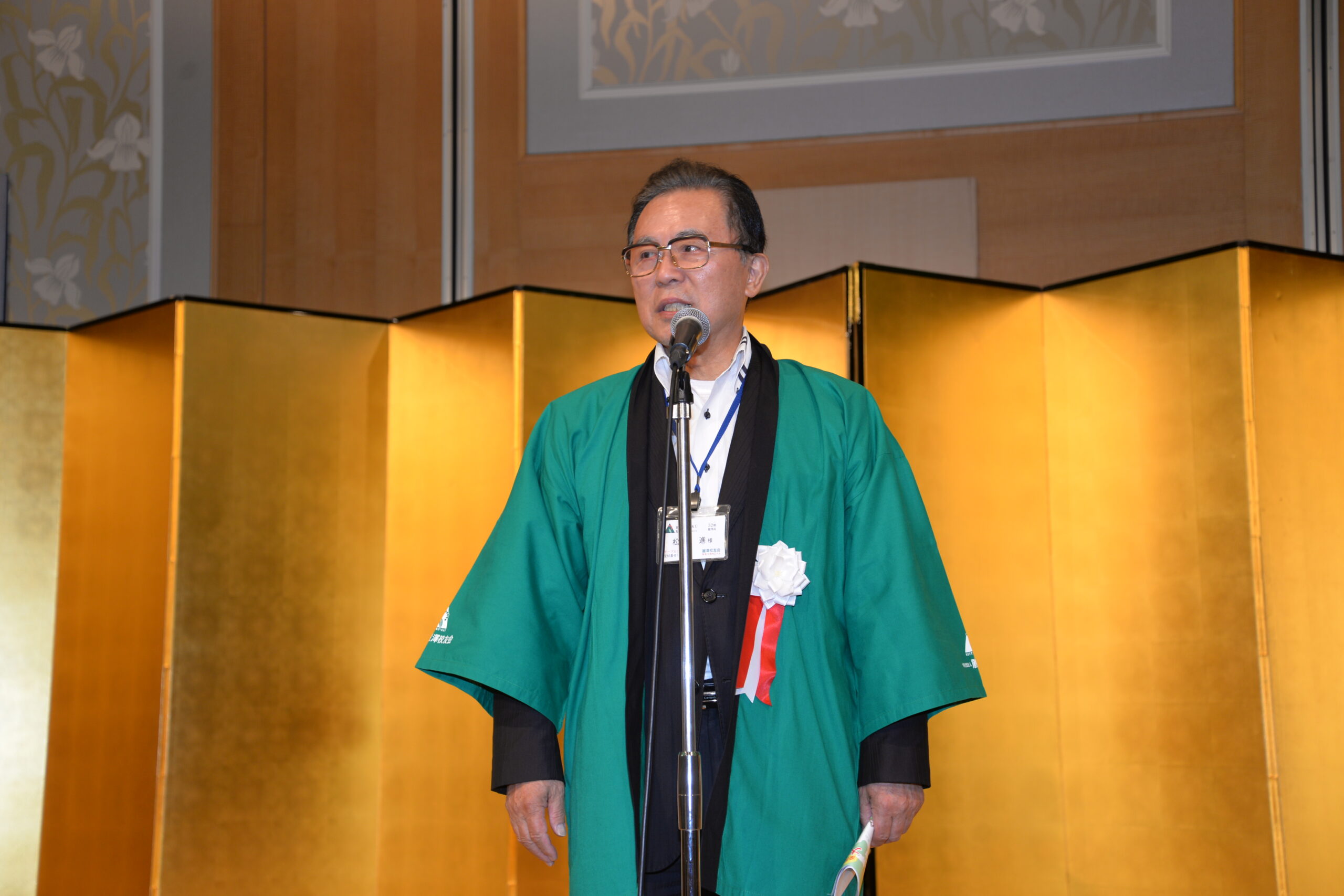 物故会員黙祷の後、松浪進麗澤校友会会長は「今回、当地域におきましては14年振りの校友会全国大会の開催となりました。ご多用の中、廣池名誉会長、奥様をお迎えし、多くのご来賓、恩師の皆様にご臨席いただき、本日ご参加いただきました皆様には厚くお礼申し上げます。来年には学園創立90周年を迎えます。昨年はホップとしての京都大会、本年は、ステップとしての東海・北陸大会、来年はジャンプの年として90周年の感謝を捧げると共に100年に向かっての新たなるスタートと位置づけ千葉県を中心に関東都県の大会を計画しています。ご参加いただいた皆様の益々のご繁栄とご多幸を祈念申し上げます」と挨拶されました。
