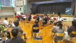 今回のテーマである「ことばとリズム」には、踊りやカルタを通して地域の文化や人のつながりを楽しく再認識してもらいたいという思いが込められています。当日は、「高島おどり」の体験やご当地カルタ大会、地元の安曇川中学吹奏楽部や若者による音楽ライブ、スタンプラリー、こども食堂や展示など、学生と地域が協働し、ともに高島の魅力を共有する場として子どもから大人まで楽しめる多彩なイベントが行われました。